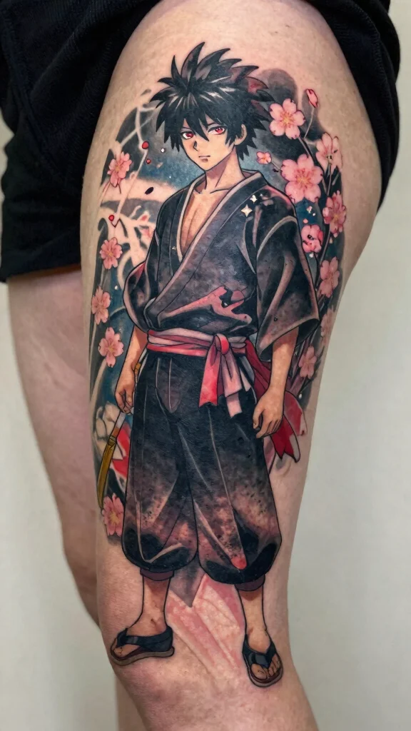 Anime leg tattoos come in various styles, from traditional to abstract. Decide if you want a colorful portrayal or a monochrome design. If you prefer a more classic vibe, choose a style that reflects the anime’s original art. If you’re looking for something unique, consider blending styles, like combining traditional tattoo techniques with anime elements for a custom look.