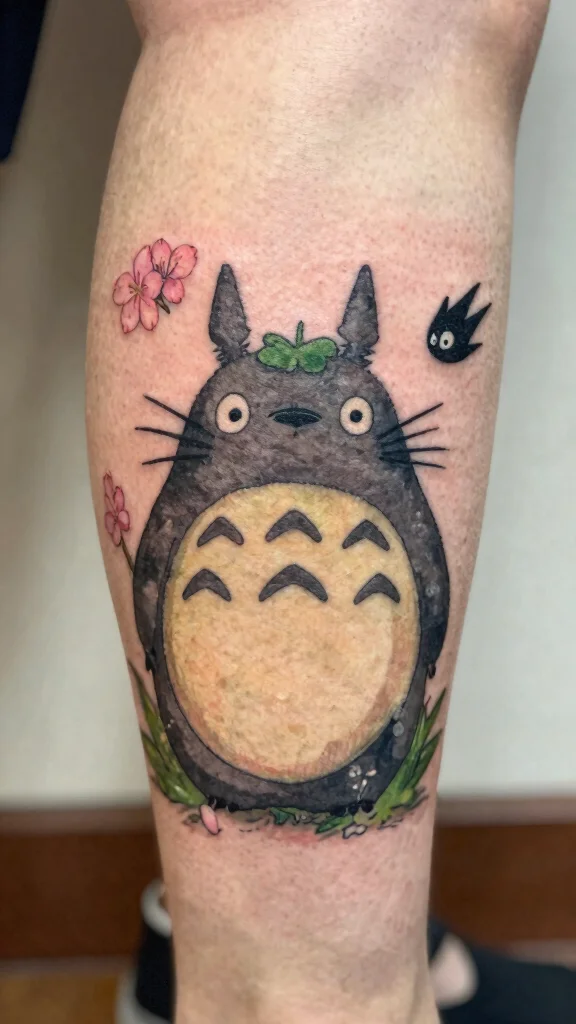 Totoro, though not a female character, can inspire a whimsical tattoo when paired with the Catbus or soot sprites. This design can reflect the enchanting world of Studio Ghibli, using soft colors to evoke childhood nostalgia.