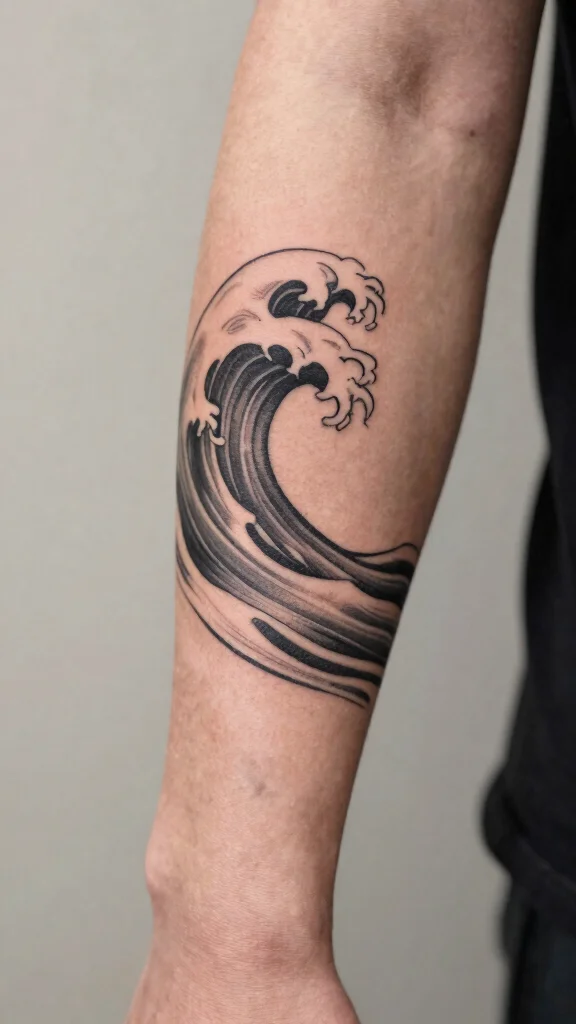 A wave tattoo serves as a reminder of life’s ebb and flow, symbolizing both peace and strength.