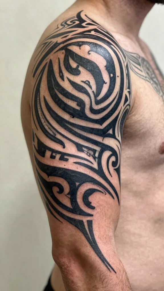 Before getting a tribal tattoo, research the meanings behind various patterns to ensure they resonate with you. Consider how the design flows along your arm for a cohesive look. Black ink is a classic choice that adds to the timeless appeal.