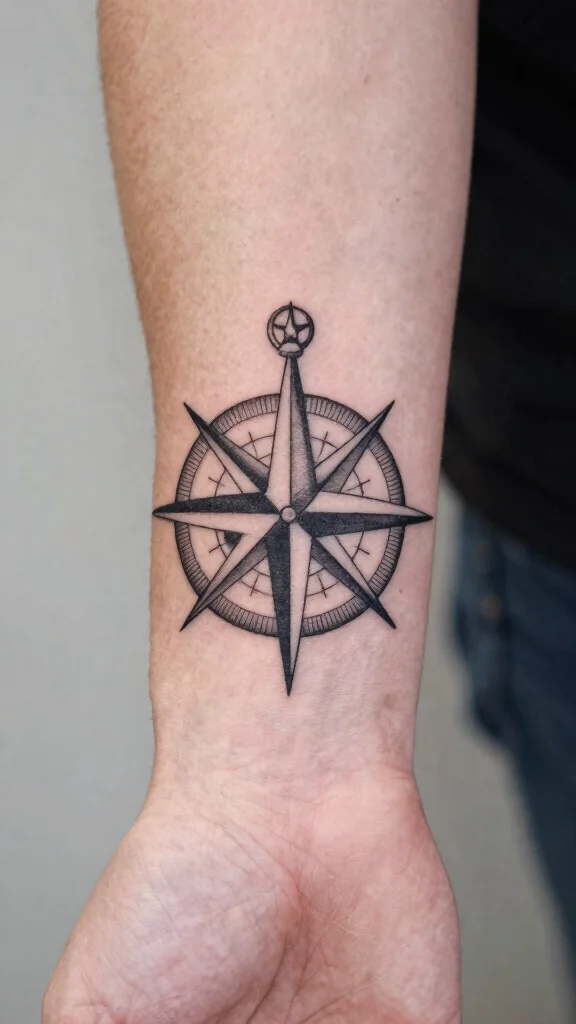 Compass tattoos symbolize guidance and a sense of adventure, making them ideal for explorers at heart. Minimalist compass designs can vary from simple outlines to intricate art, providing a versatile option for arm tattoos.