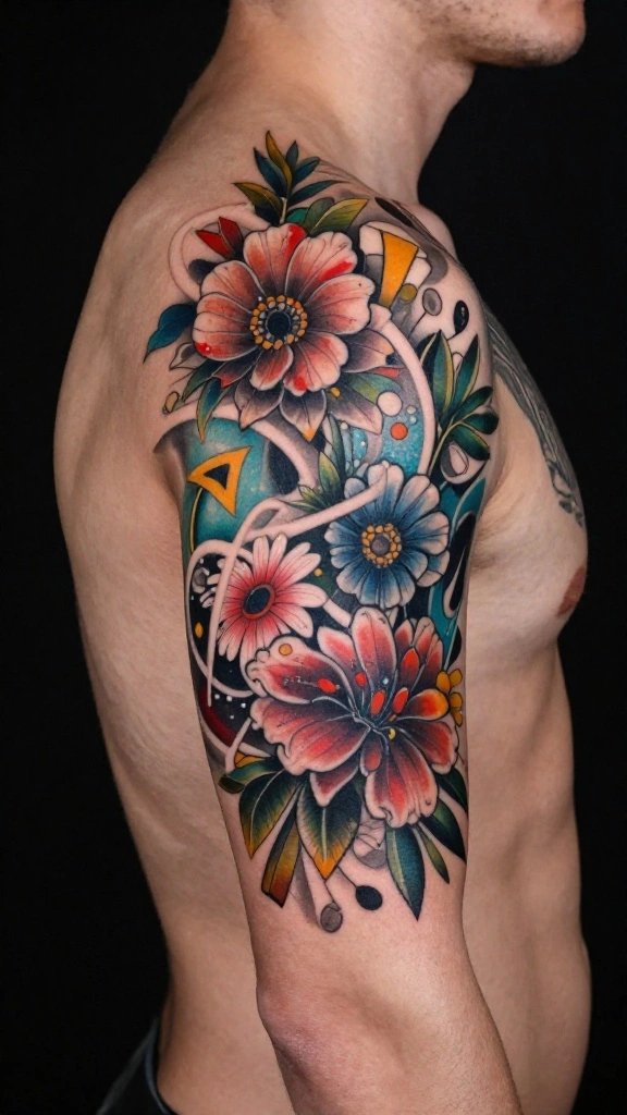 Choose flowers that hold personal significance and discuss color options with your artist to match your style. Combining floral elements with geometry provides a modern twist on classic designs.