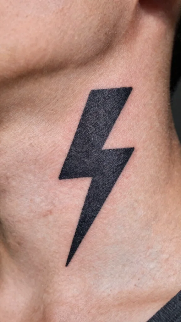 Lightning bolt tattoos symbolize power, energy, and transformation. A minimalist design can be striking when placed on the neck, with sharp angles and bold shapes that create an impactful look.
