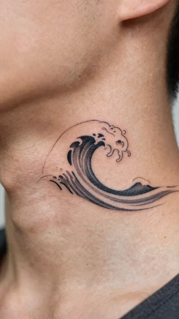 Reflect on how waves connect with your personal experiences or philosophies. Ensure the design remains clean and flowing for visual simplicity, and consider elegant placements along the side of the neck.
