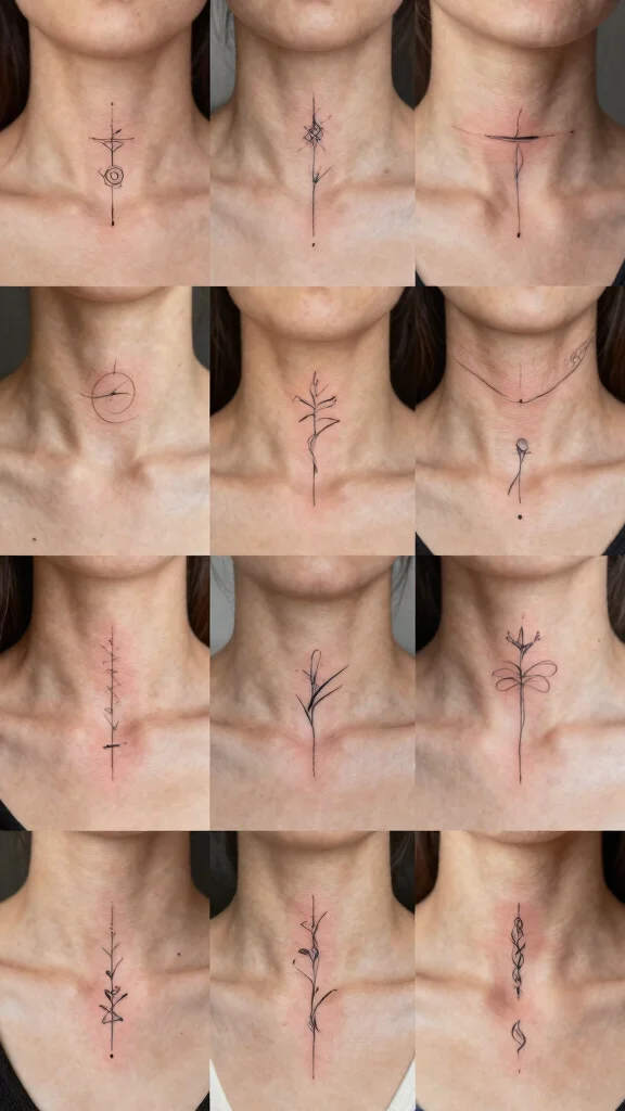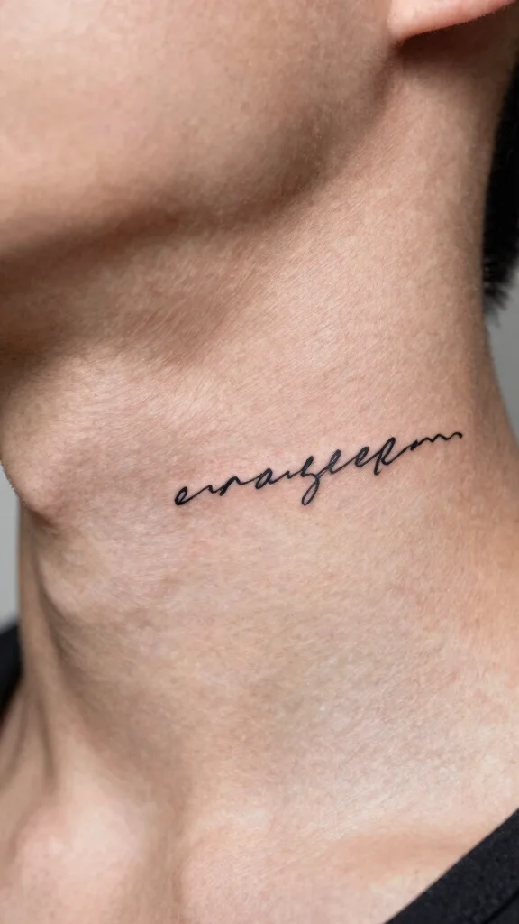If you believe in the power of words, a simple quote or word tattoo can be incredibly impactful. These minimalist designs can be placed vertically along the neck or horizontally across the collarbone, offering a sleek way to express important beliefs or motivations.