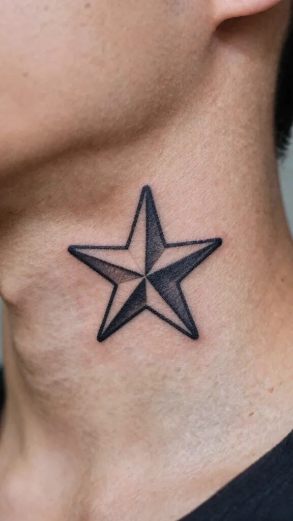 Nautical stars are rich in history, symbolizing guidance and protection. As a neck tattoo, these five-pointed stars can be rendered in a minimalist style, creating a striking and meaningful piece. Their clean lines and familiar shape make them an excellent choice for anyone seeking a simple yet significant tattoo.