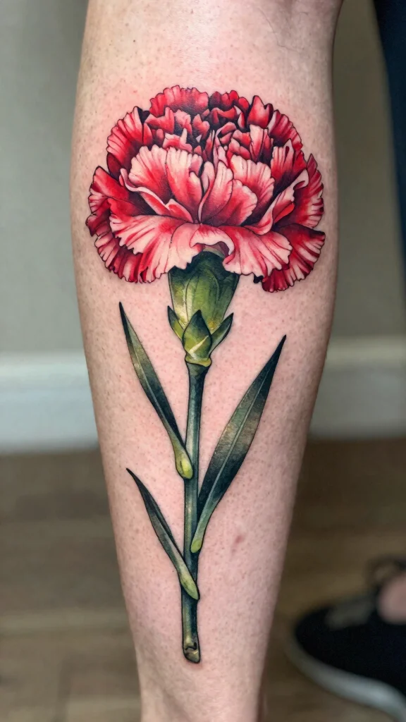 This carnation tattoo will not only beautify your leg but also serve as a heartfelt reminder of the love you cherish.