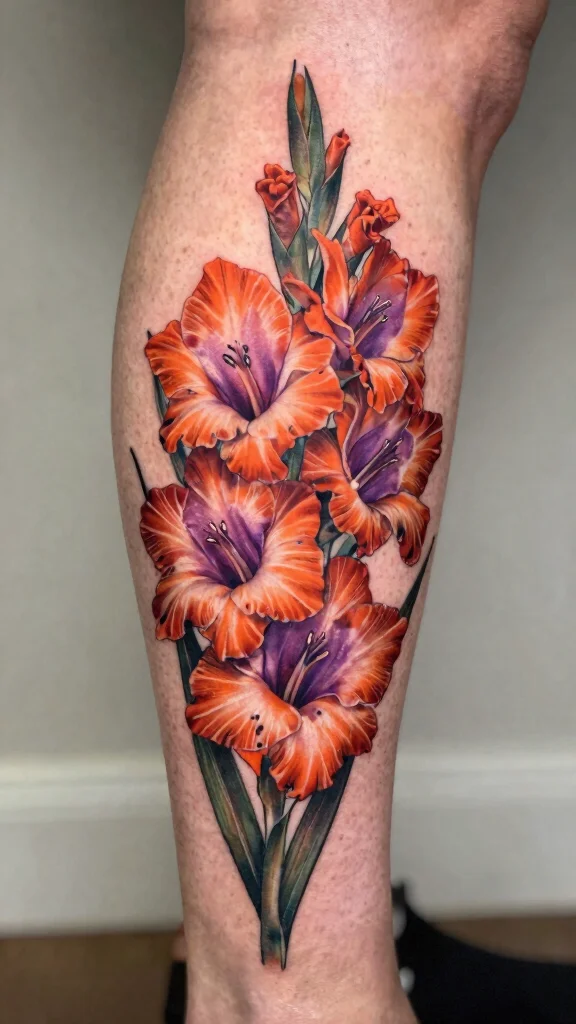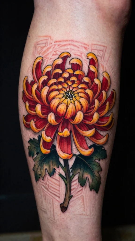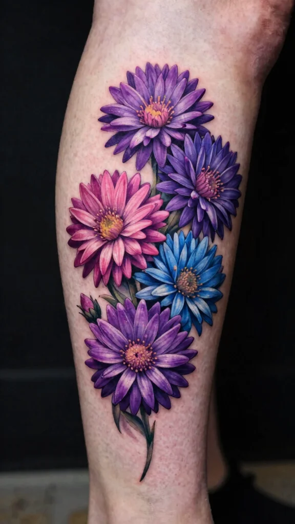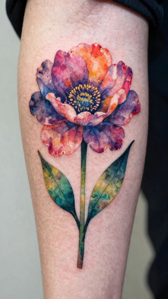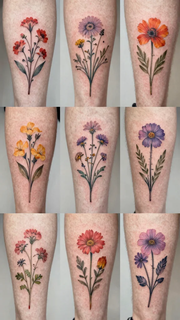 Watercolor tattoos are known for their vibrant colors and artistic flair, perfect for showcasing your birth flower. Imagine a burst of color emanating from your flower, blending seamlessly into a stunning watercolor background. This style allows for creative expression, especially on your leg where you have ample space.