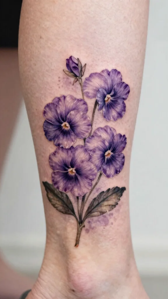This tattoo can evoke feelings of loyalty and love, especially if dedicated to someone born in your month. Consider adding a splash of purple watercolor for a modern twist or other floral elements for dimension.