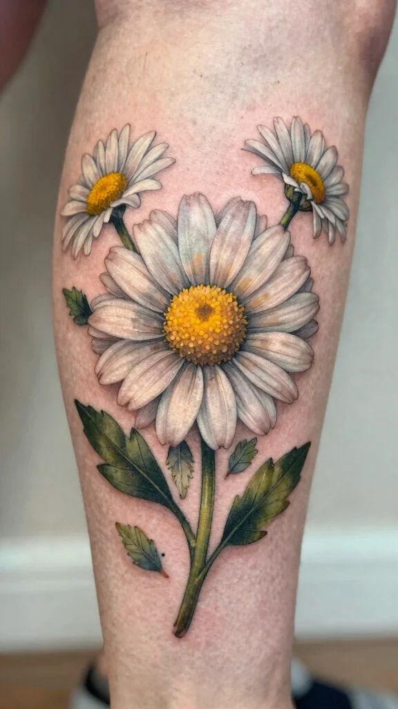 A daisy tattoo not only adds beauty to your leg but also invites you to embrace your inner child and the joy of life.