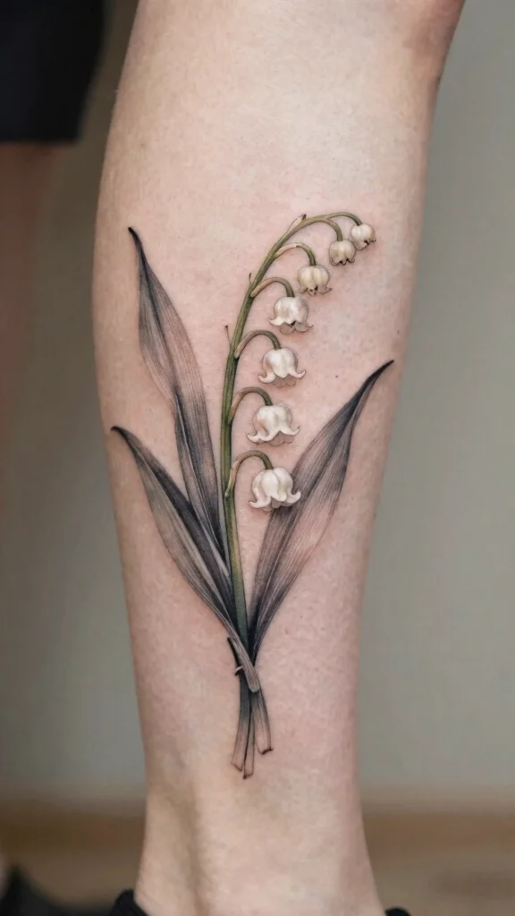 A lily of the valley tattoo beautifully reflects gentleness and simplicity, adding a touch of grace to your leg.