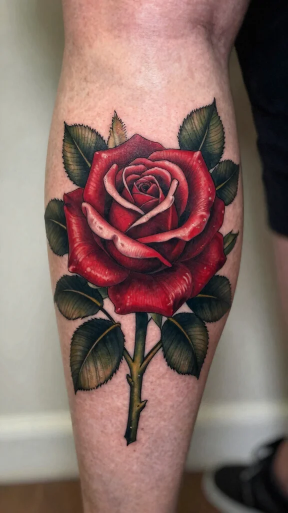 A rose tattoo serves as a constant reminder of love, making it a beautiful addition to your leg.