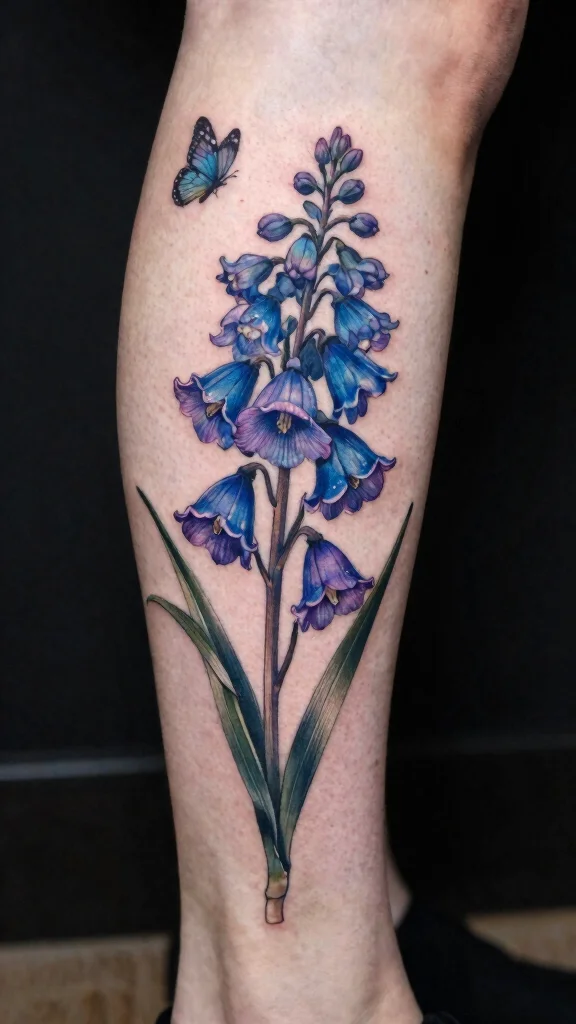 Consider incorporating a variety of colors to mimic a wildflower garden, adding vibrancy to your tattoo. The height and movement of the larkspur can add a dynamic touch.