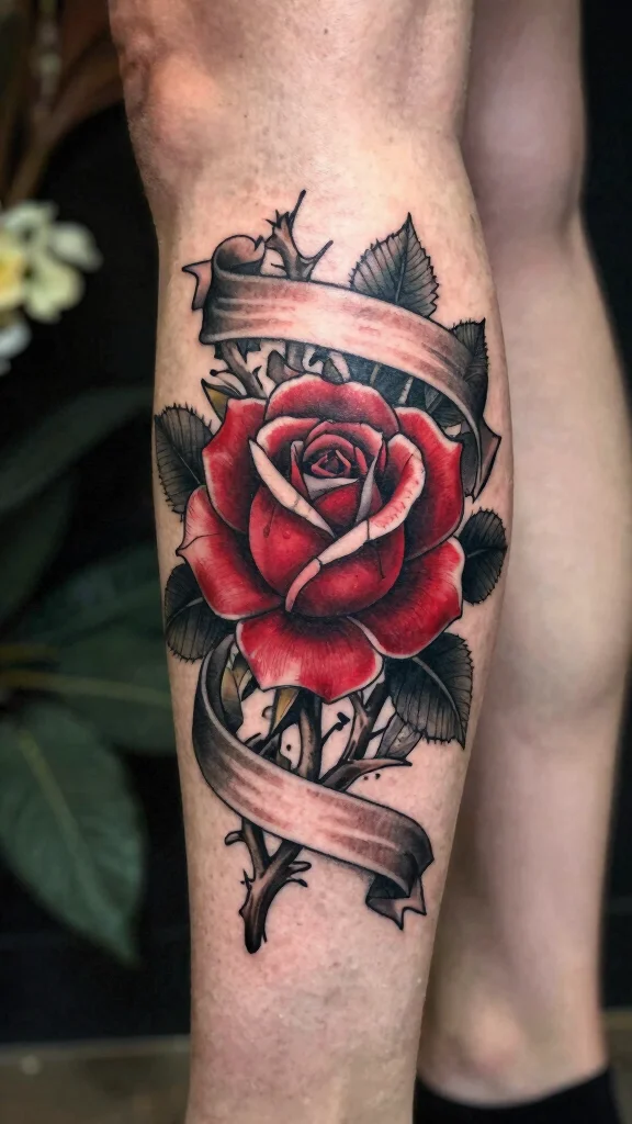 When considering this tattoo, think about adding personal elements such as unique colors or additional symbols that reflect your story. The classic rose remains a popular choice, especially for women, as it can be tailored to fit individual styles and preferences.