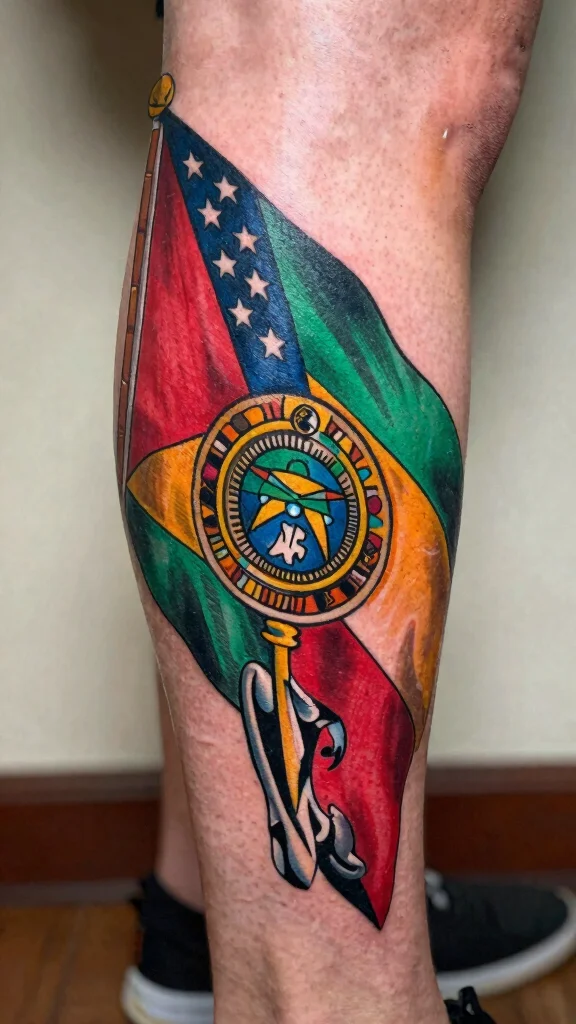 Incorporating a flag tattoo on the leg can be a striking way to display your beliefs and values. The design can include elements like stars or eagles, enhancing the flag’s meaning. This tattoo serves as a reminder not just for you but also honors your community and roots.
