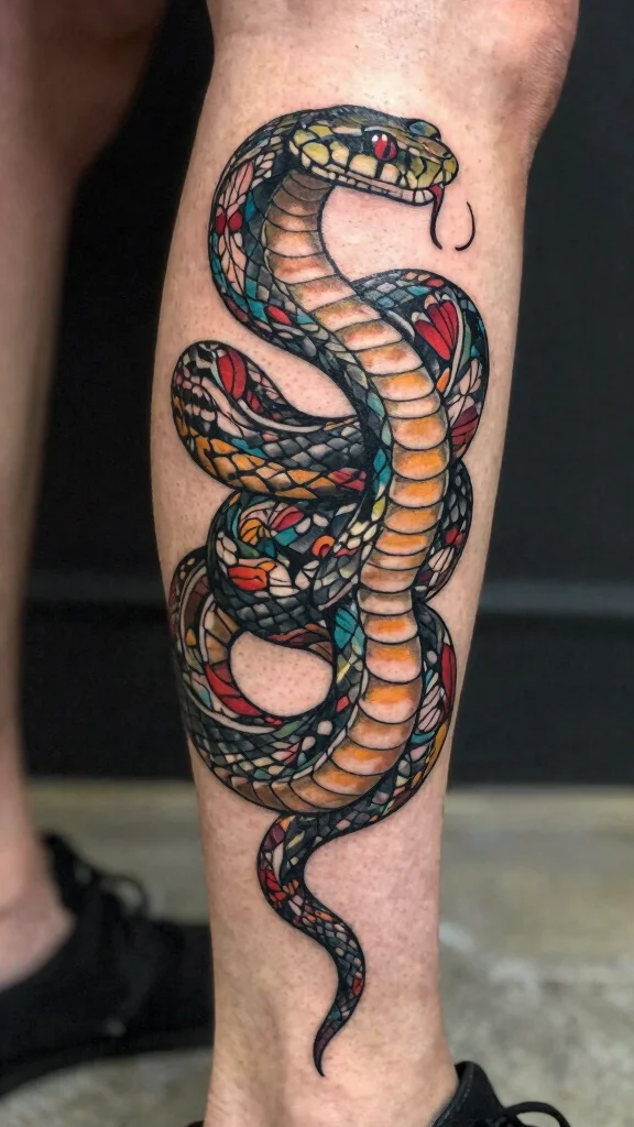 On the leg, serpents can create flowing designs that wrap beautifully around your body. Whether you prefer a minimalist look or an intricate piece, serpent tattoos are a unique way to express your journey and connection to your heritage. Bright colors can enhance the effect, making the design lively and eye-catching.