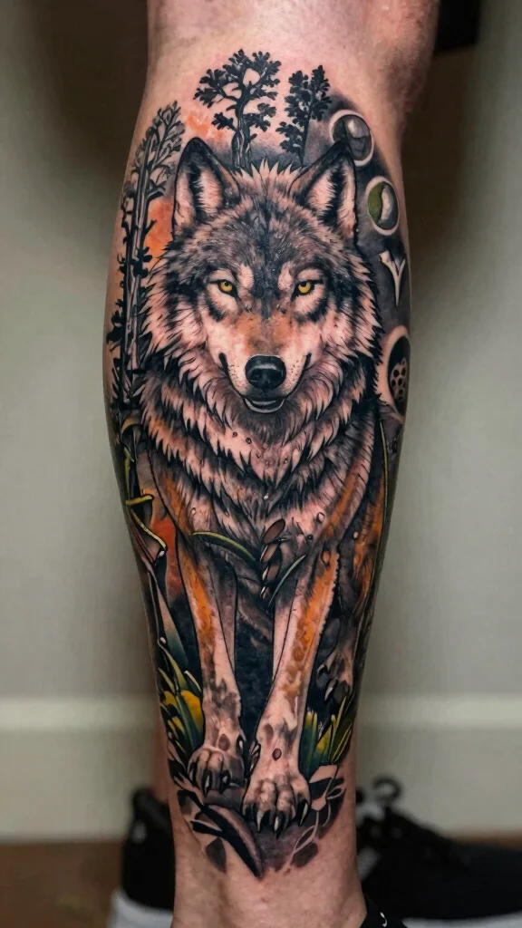 The leg provides a larger canvas for the intricate details of the wolf to shine. Adding elements like trees or moon phases can enhance the storytelling aspect of your design. Customize your wolf tattoo with colors that resonate personally, making it truly unique.