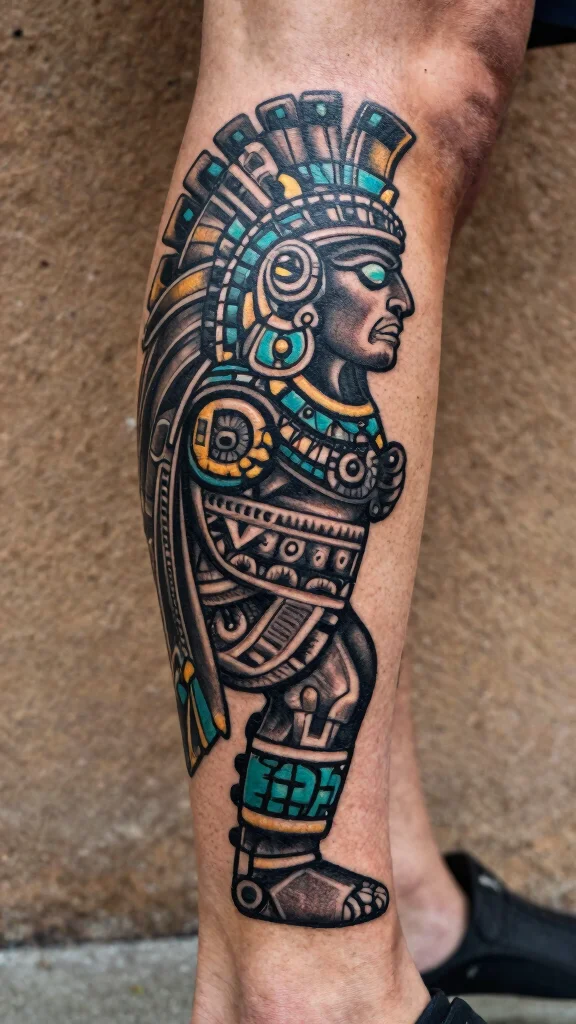 An Aztec warrior symbol tattoo is more than just art; it embodies strength and resilience, reflecting a rich cultural heritage. These tattoos often feature stylized warriors adorned in traditional gear, complete with elaborate headdresses and weapons, showcasing intricate line work. This powerful imagery tells a story of bravery and heritage, making it an impactful choice for your leg.