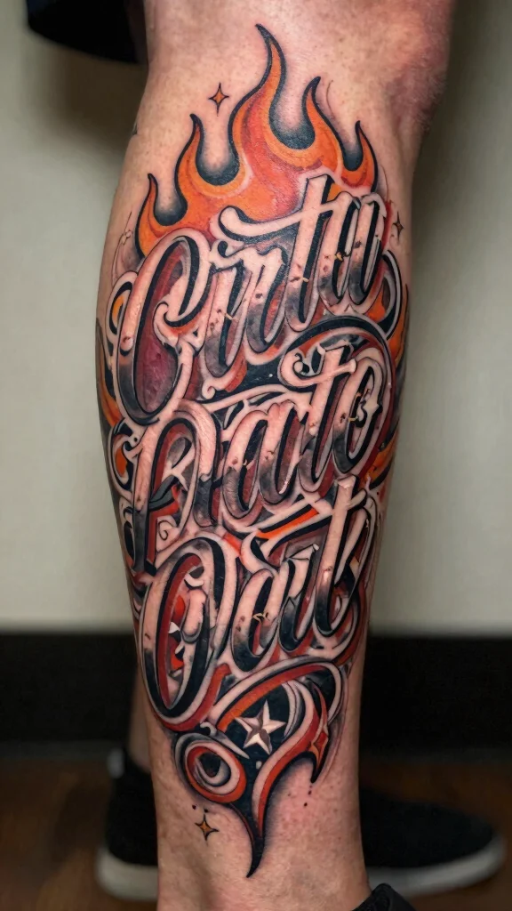 When integrating text into your leg tattoo, think about pairing it with imagery for a cohesive design that tells a fuller story. Choosing a unique font style that reflects your personality can make this tattoo even more special.