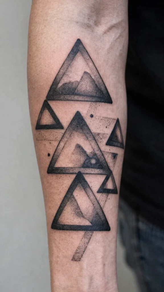 To make this design uniquely yours, think about experimenting with different sizes and orientations of the triangles for a captivating flow. You can also collaborate with your tattoo artist to incorporate personal elements that resonate with your journey.