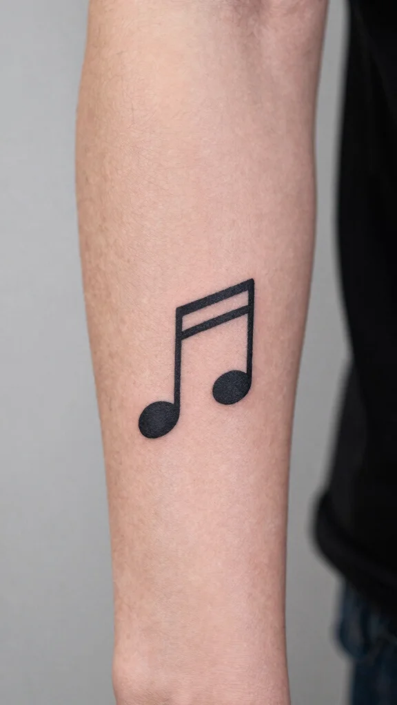 For music enthusiasts, a minimalist music note tattoo is a perfect way to symbolize your passion and creativity. This design is simple yet bold, making it an effortless addition to any arm tattoo collection. The fluid lines reflect the rhythm of life, serving as a reminder of what inspires you.