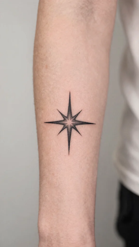 A minimalist star tattoo symbolizes dreams, hopes, and guidance, making it a beloved choice for many. This design can range from a simple outline to more intricate details, allowing for personal expression. The star can represent aspirations or beliefs, adding meaningful depth to your tattoo collection.