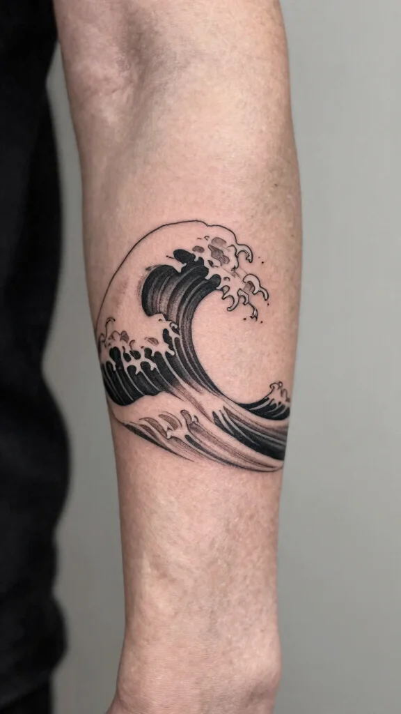 If the ocean calls to you, a minimalist wave tattoo is a fantastic way to express that connection. Featuring smooth lines that mimic the flow of waves, this design brings a calming and artistic feel to your arm. Its simplicity enables it to complement other tattoos effortlessly.