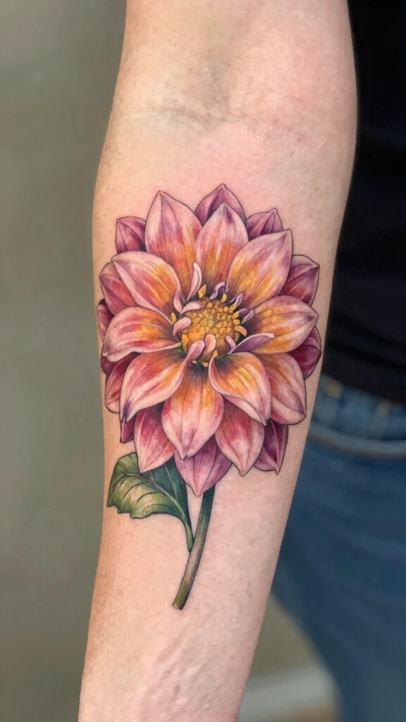 Dahlia tattoos symbolize inner strength and grace, making them an excellent choice for those desiring a meaningful design. A dahlia can be depicted in a minimalist style, emphasizing its intricate petals or as a fuller design that celebrates its beauty. Positioned on your arm, this tattoo reflects strength and elegance.