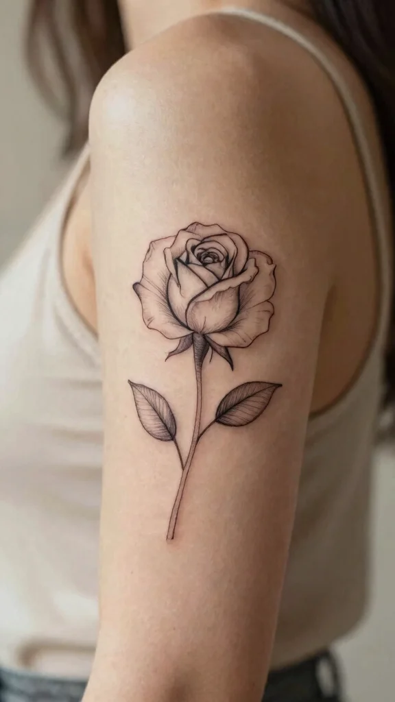 When choosing a minimalist rose, think about how you want to convey its beauty. You can opt for a single bloom or add soft leaves for extra dimension. Using black or dark ink will create a bold contrast against your skin, enhancing its visibility.