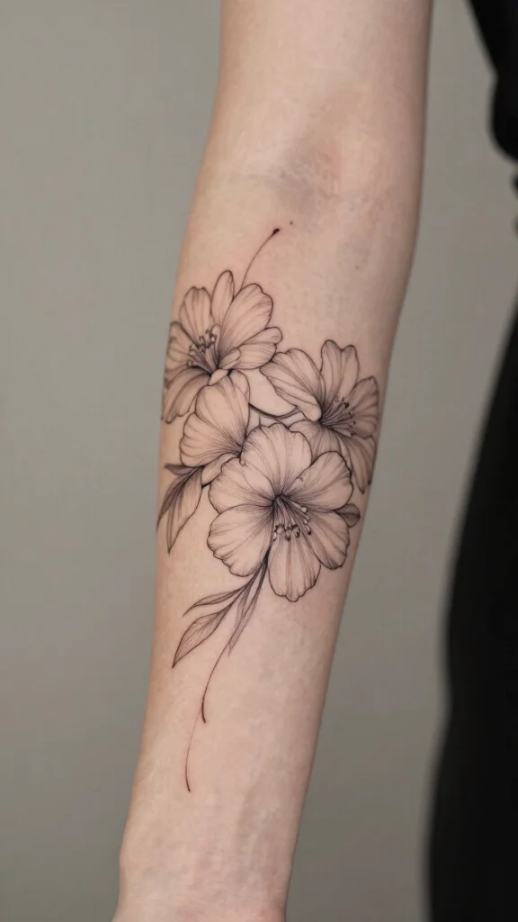When selecting a line art design, think about how you can make it your own. Incorporate various flowers to create a multi-dimensional look, or play with the positioning to follow the natural curves of your arm. Choosing a skilled artist specializing in fine line work is essential for achieving the precise detailing you desire.
