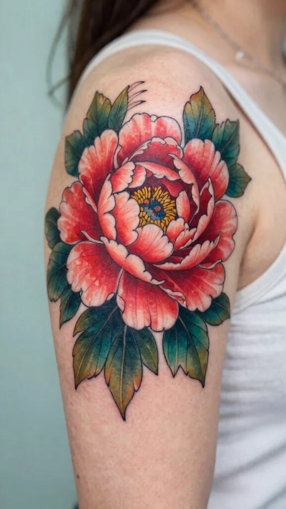 – Bold Peony Floral Tattoos pack a punch with their vibrant colors and intricate details, making them a statement piece.