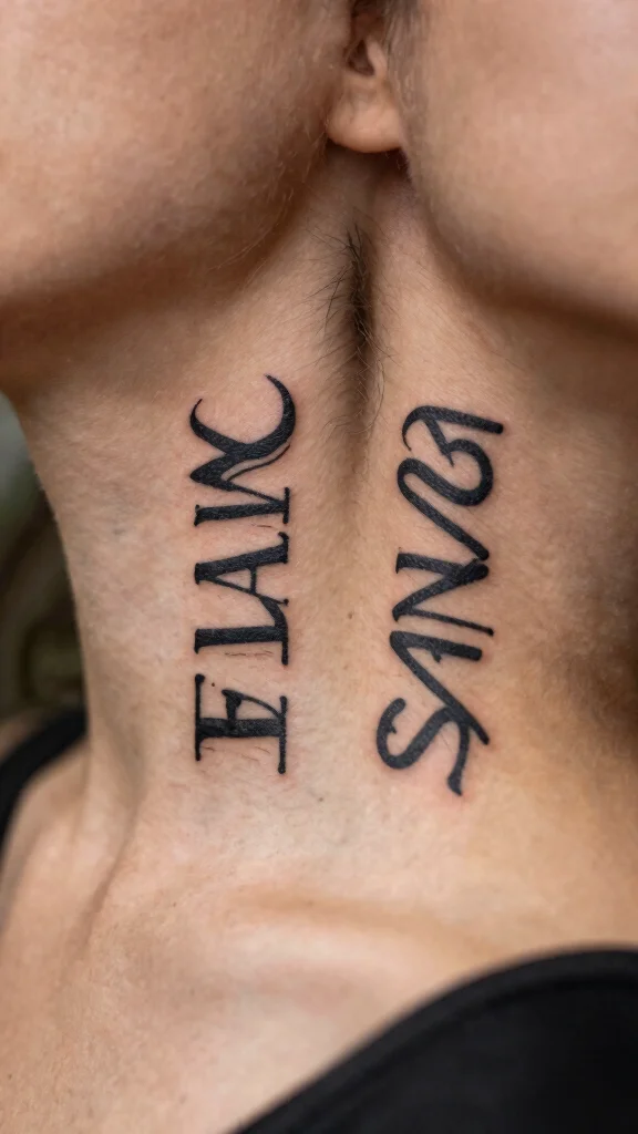 Costs for neck name tattoos vary with size, font complexity, and the artist’s rate. Small minimalist pieces can start around a few hundred dollars, while larger or more intricate name tattoo designs may run higher. The neck is considered moderately painful to tattoo due to thin skin and nerve endings, with higher sensitivity near the jawline and collarbone. Get quotes from multiple studios, review artist portfolios, and ask for a stencil or mockup before committing. Plan for potential touch-ups later to keep couple name tattoos ideas neck looking sharp as your skin changes over time.