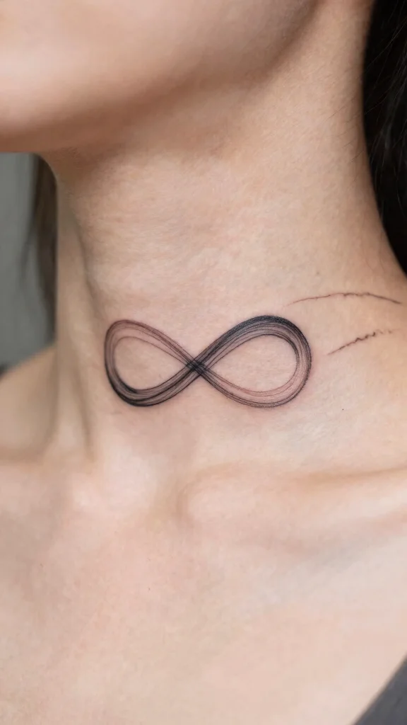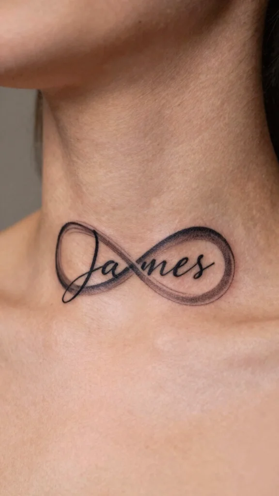 Creating an infinity loop that includes one partner’s name symbolizes everlasting love. The flowing design represents an unbreakable bond, making it both visually striking and profound. Positioning this tattoo on the side or back of the neck creates a bold statement piece.