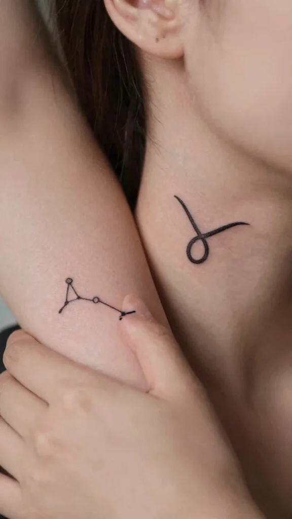 Zodiac tattoos express individuality while celebrating your bond, intertwining cosmic elements with love.