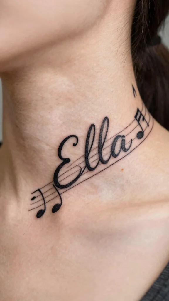 Positioning this tattoo behind the ear or at the nape of the neck offers a subtle yet stylish look. Choose notes that reflect a meaningful song or your favorite melody for personalization.