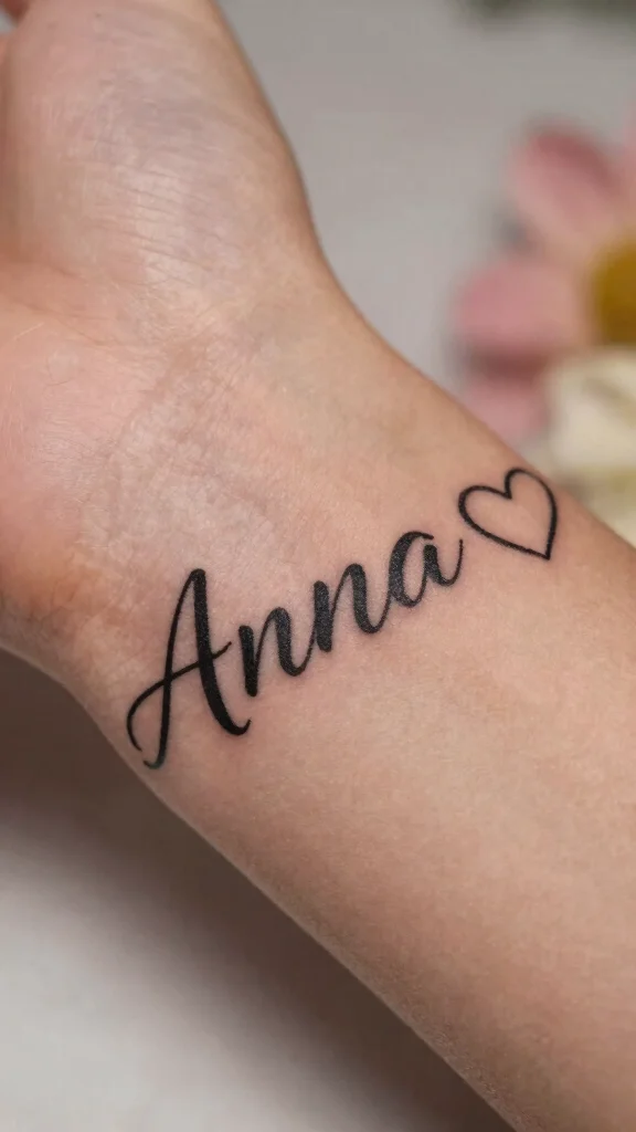 Choose a heart style that resonates with both of you, whether it’s sharp and edgy or soft and rounded. Think about incorporating a small heart next to the name for a delicate touch.