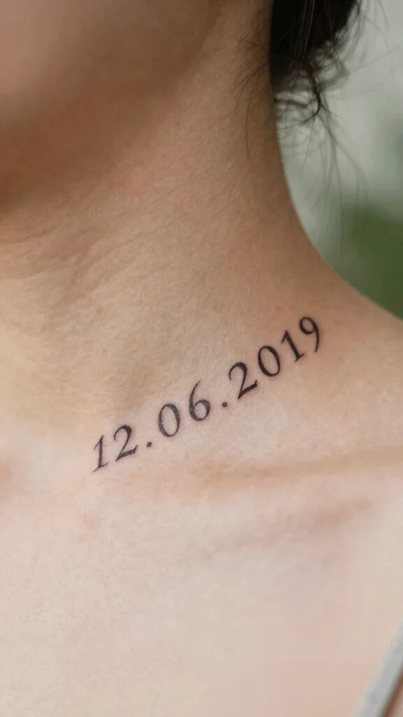 Tattooing significant dates, like anniversaries or the day you first met, can be a profound expression of your love. This minimalist design is perfect for those who appreciate simplicity with deep meaning. You can represent the date in numbers or Roman numerals, depending on your personal style. Placing this tattoo on the side of the neck keeps it personal yet visible.