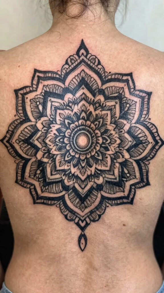 Mandala art can turn your back into a stunning focal point, providing beauty and significance while concealing unwanted ink.