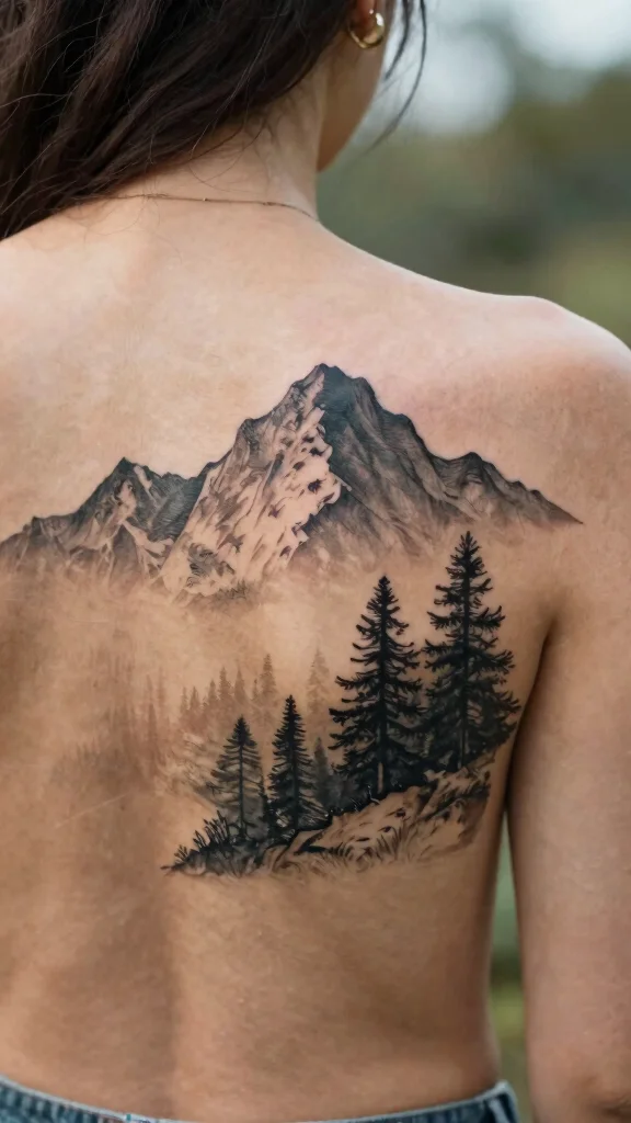 Nature-inspired tattoos capture the beauty of the outdoors, featuring designs from mountains to trees. When placed on the upper back, these tattoos reflect your love for nature and its tranquility. Whether it’s a mountain silhouette or delicate branches, each design can bring a unique sense of peace.