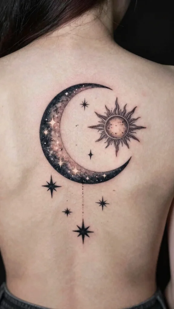 When creating your celestial tattoo, think about how the elements can interact with one another to tell a cohesive story. Collaborating with an artist can help you design a layout that flows beautifully across your back. Choose colors from muted tones to vibrant shades, depending on your desired aesthetic.
