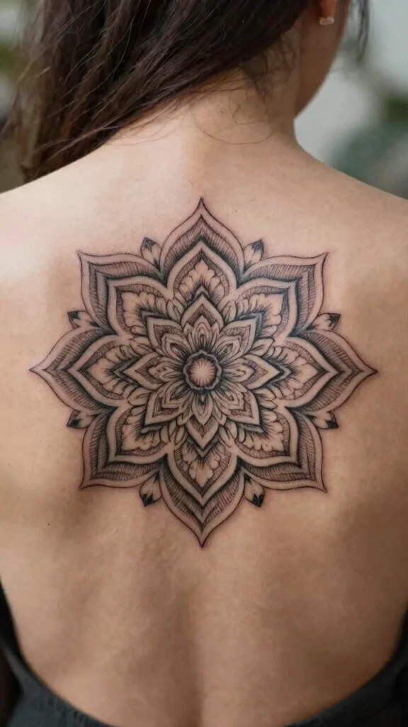 When considering a mandala tattoo, think about whether you want to add color or keep it classic with black ink for a timeless feel. Working with a tattoo artist experienced in mandala designs will ensure that every detail is executed precisely, enhancing its overall beauty. The symmetrical nature of mandalas also complements the natural shape of your back beautifully.