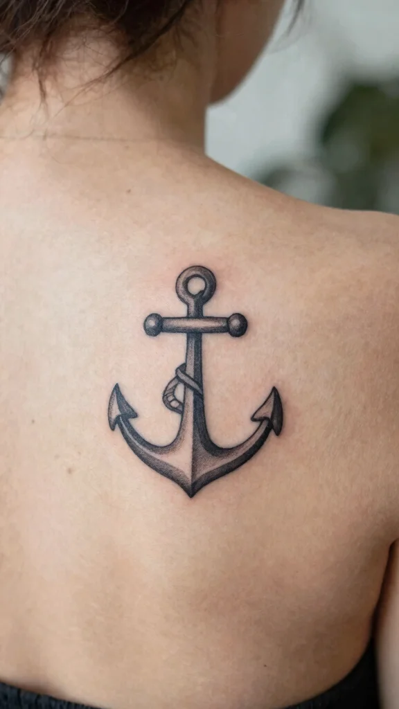 Anchor tattoos symbolize stability and strength, making them a stylish yet meaningful choice for the upper back. A minimalist anchor design can convey a connection to home, loved ones, or resilience. This tattoo style easily integrates into your wardrobe while still making a significant statement.