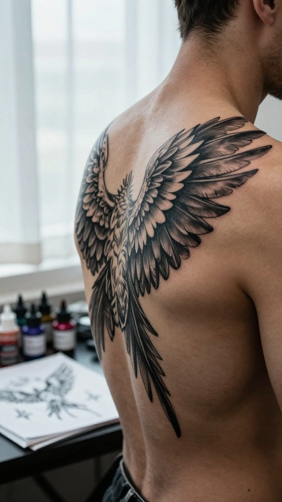 – Design Integration: Think about how the wings interact visually with other tattoos.