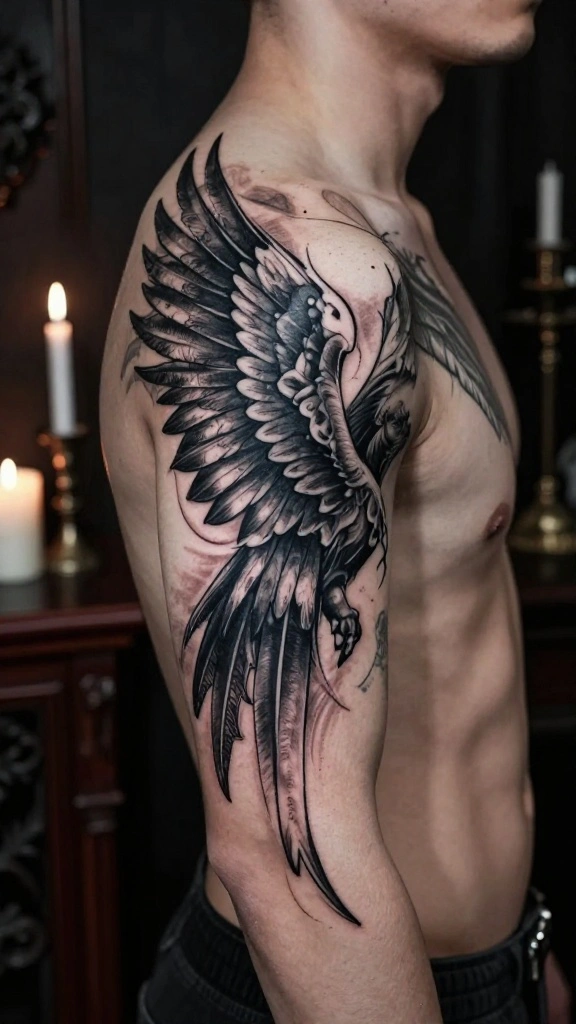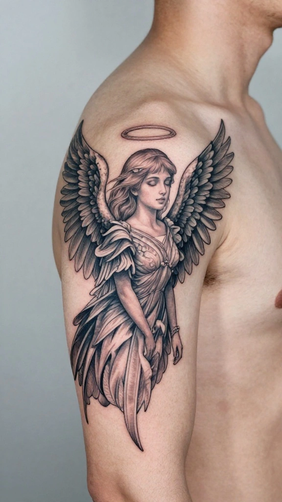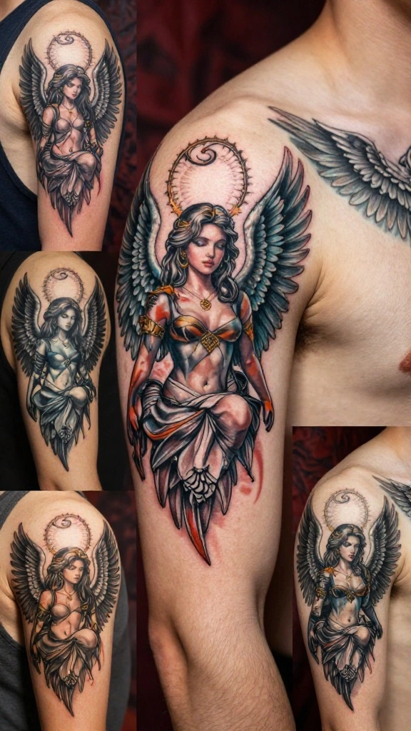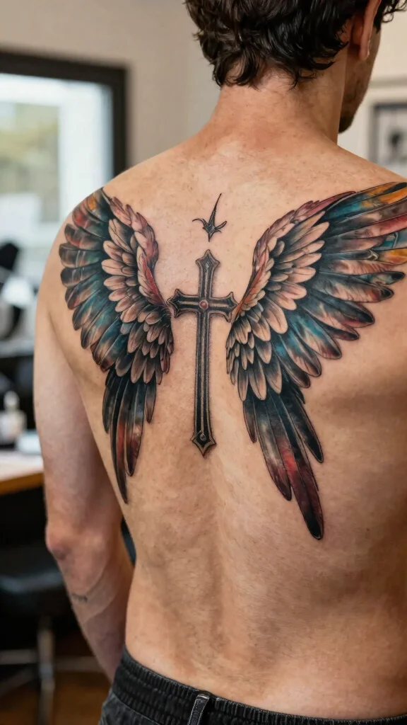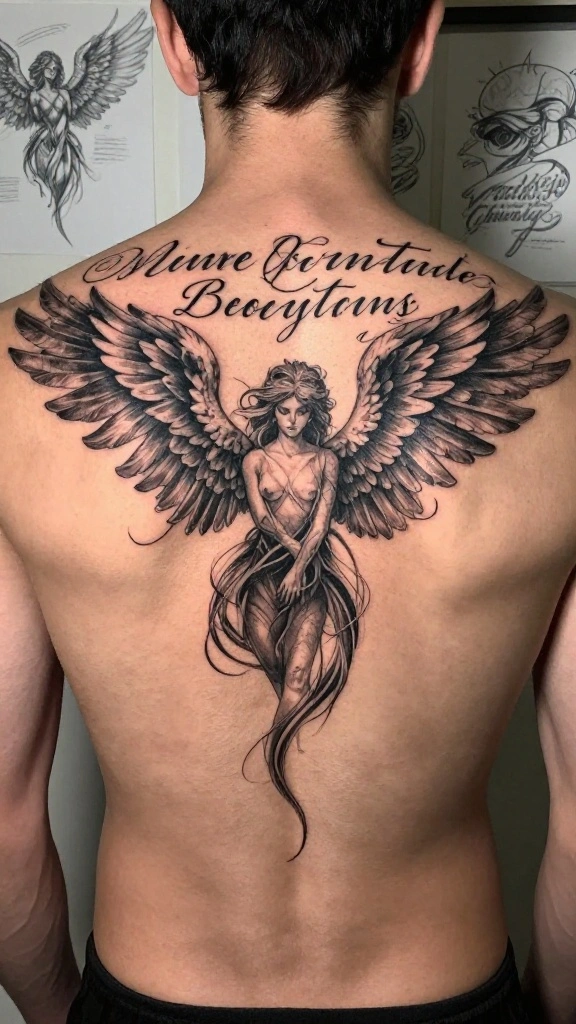 Men often select this style to express spirituality or as a tribute to someone significant in their lives. The flow of the wings can be designed to wrap around the shoulders, enhancing the overall aesthetic appeal.