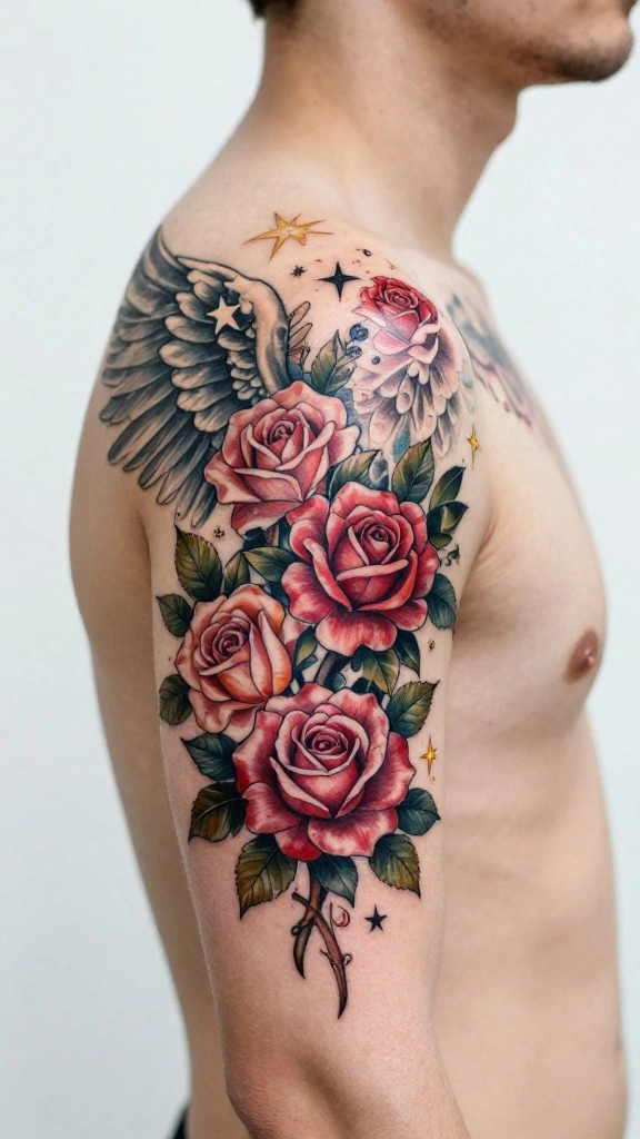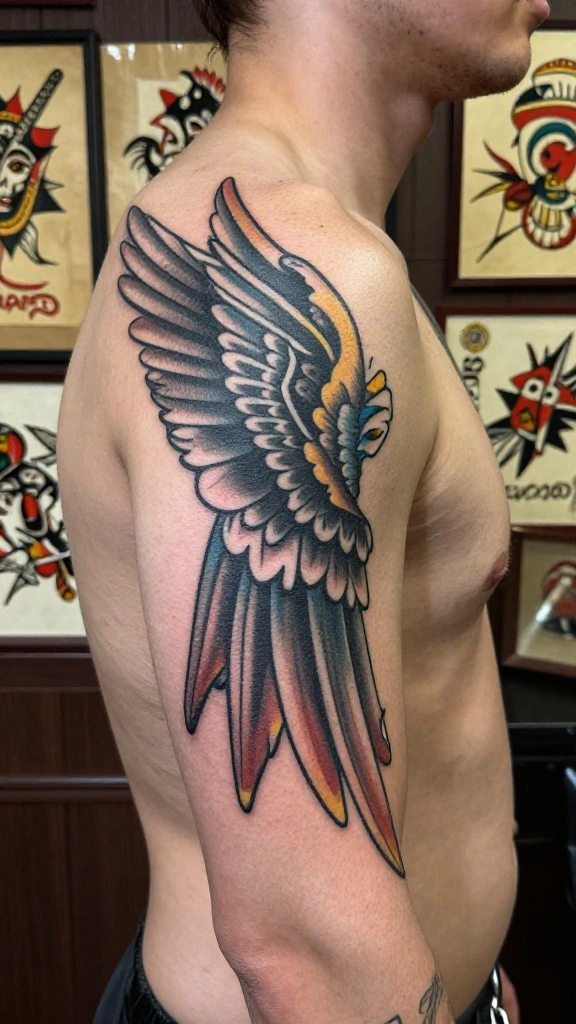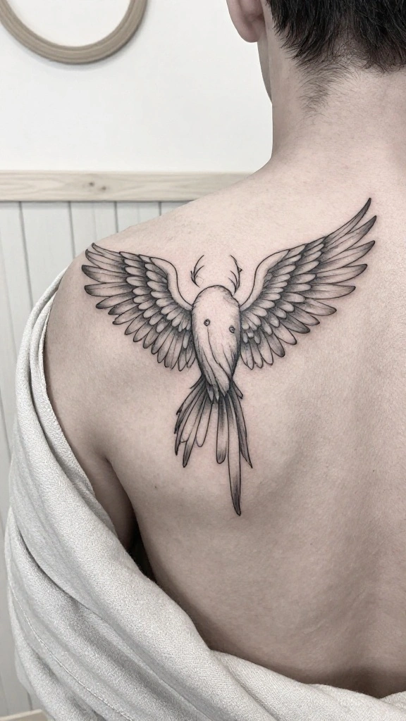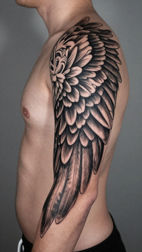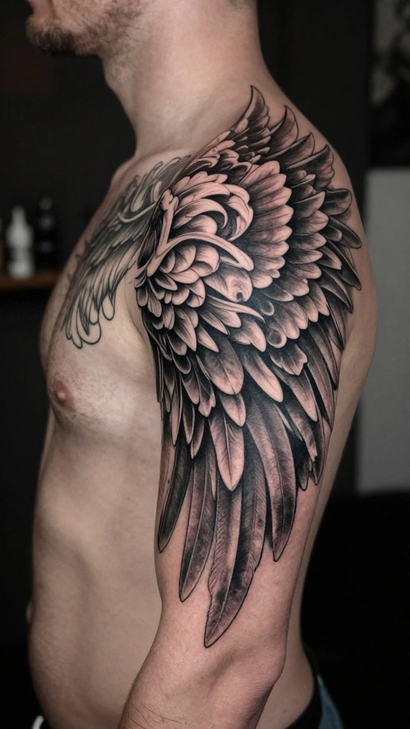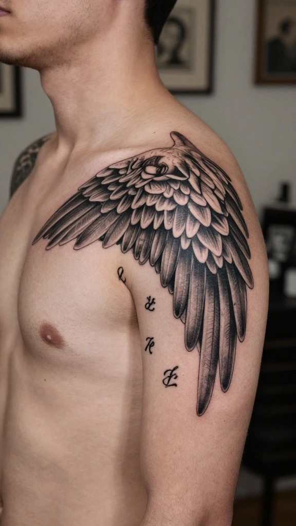 Men often select this style to express spirituality or as a tribute to someone significant in their lives. The flow of the wings can be designed to wrap around the shoulders, enhancing the overall aesthetic appeal.