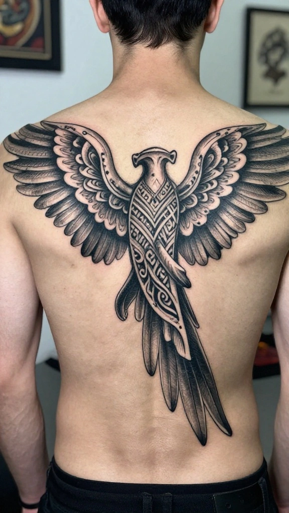 When choosing an abstract design, think about how the lines and shapes will flow across your back. You can personalize the tattoo by incorporating meaningful dates or symbols that reflect your life.