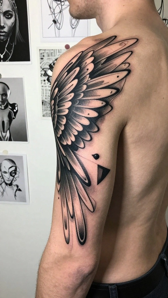 Abstract wing tattoos provide a modern twist on traditional designs, merging geometric shapes and patterns to create something truly unique. These tattoos can spark conversations and attract those who have an appreciation for contemporary art. They symbolize personal journeys and the triumph over challenges, making them ideal for anyone looking to express growth.