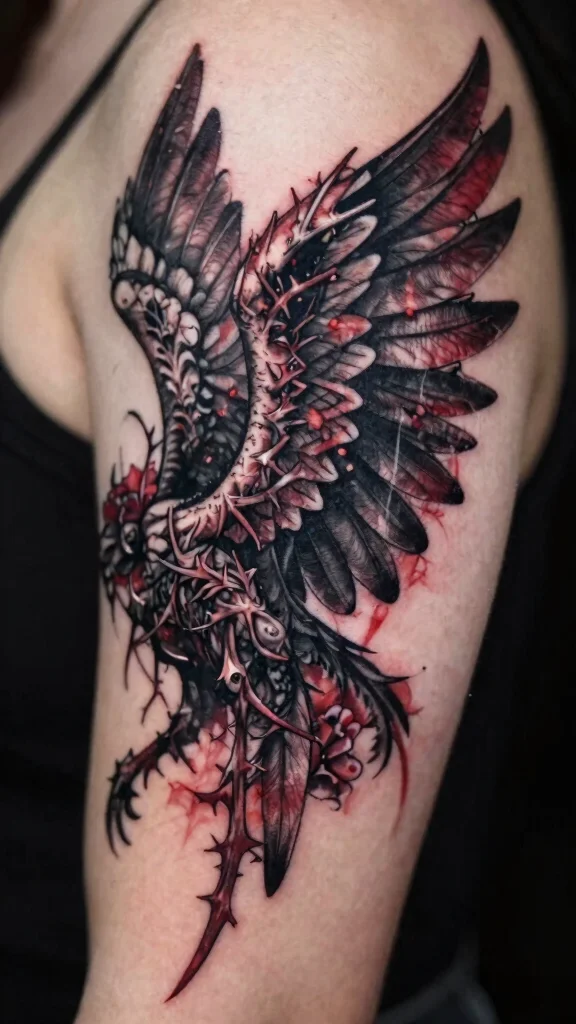 Gothic angel wings offer a unique blend of dark romanticism and striking visuals. These designs often feature intricate details, dark color palettes, and dramatic elements that create a captivating look. Gothic wings can incorporate elements like thorns, skulls, or dark florals, resulting in a stunning piece that tells a story.