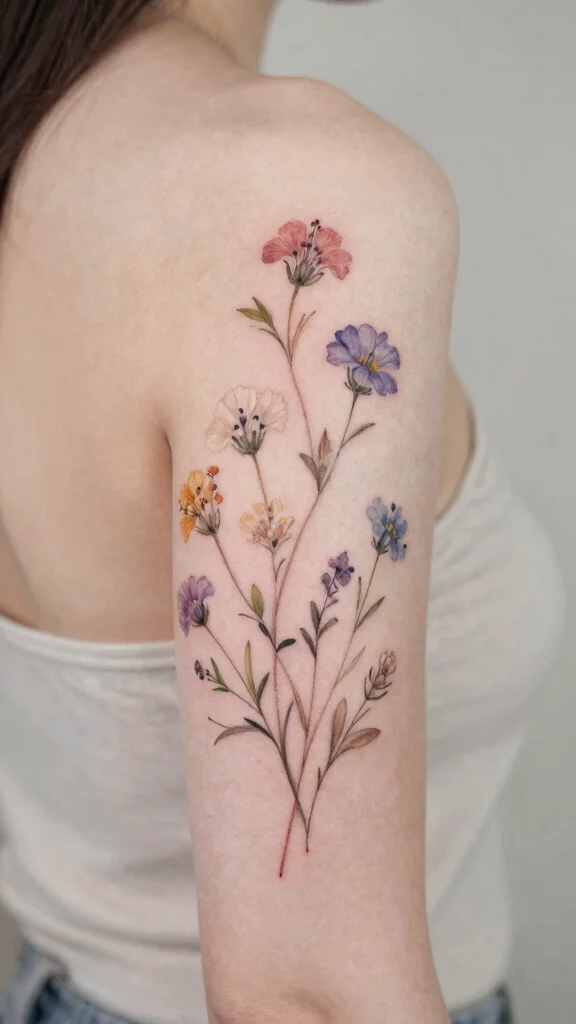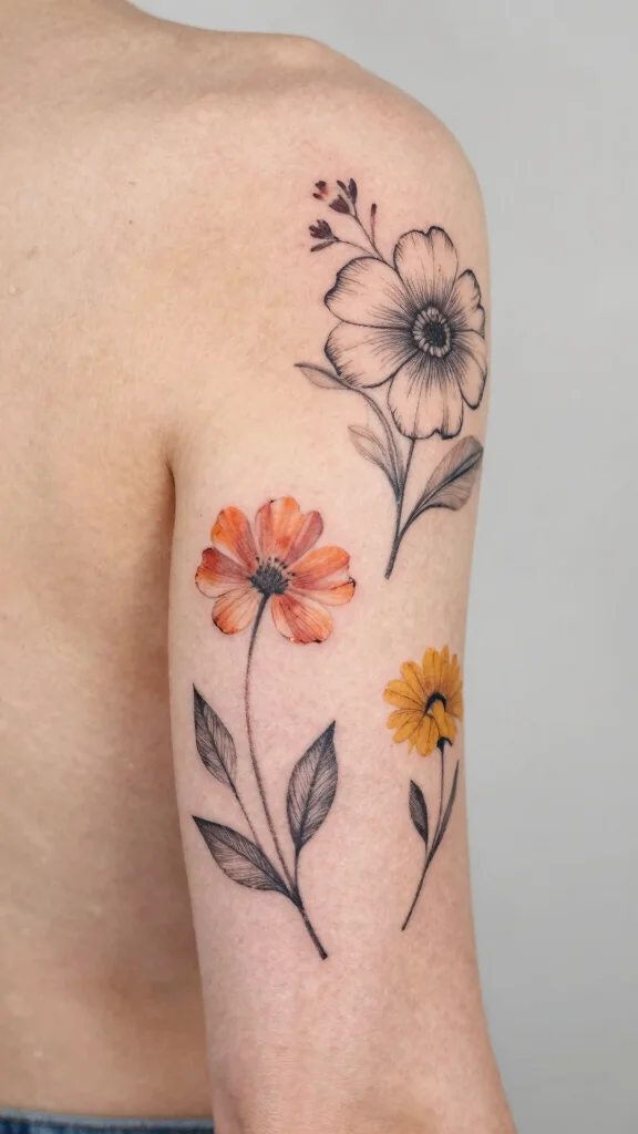 – Discover popular tattoo designs for arm placements that focus on delicate and subtle floral elements, enhancing your overall look without overwhelming your style.