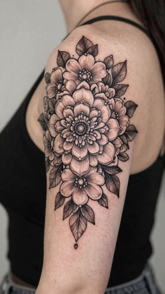 The contrast between the large blooms and fine details creates an enthralling presentation. Be sure to discuss color options with your tattoo artist, choosing soft blush tones for gentleness or bright colors for vibrancy.